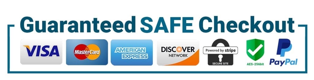 The Checkout Process is Guaranteed to be 100% Safe and Secure with Visa, Mastercard, AMex, Discover, Apple Pay or PayPal.